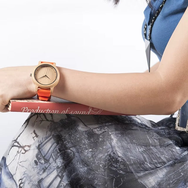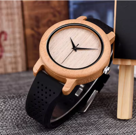 Nuestros relojes están elaborados con materiales naturales como bambú y corcho. Algunas versiones incluyen correas de silicona o cuero ecológico, siempre priorizando la sostenibilidad y la comodidad.