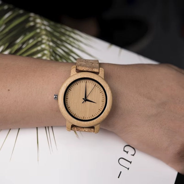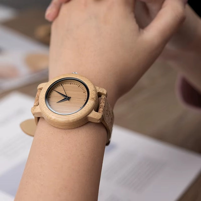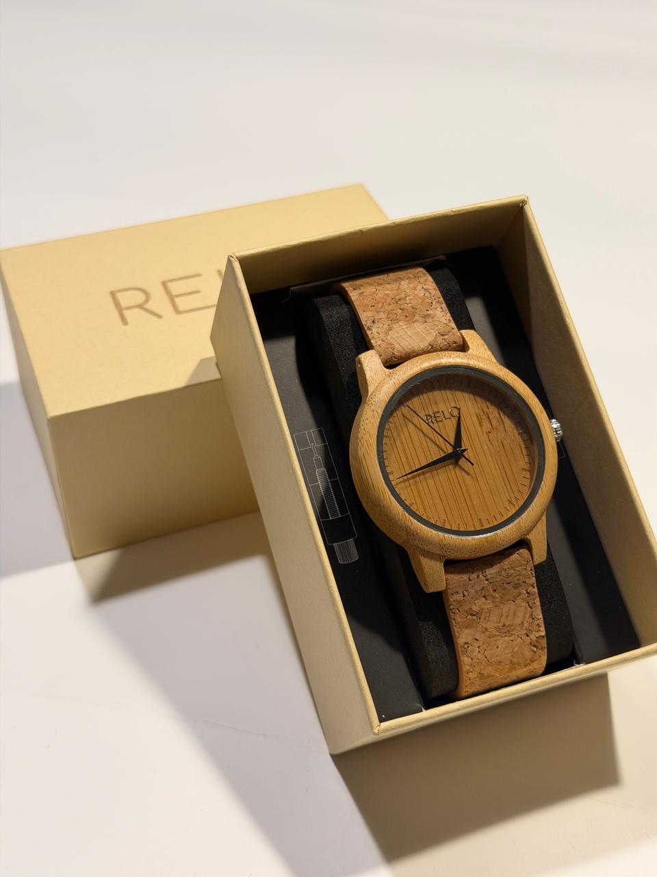 Siente la calidez del bambú y la suavidad del corcho natural. Cada reloj RELO está diseñado para recordarte que la elegancia puede ser sostenible.